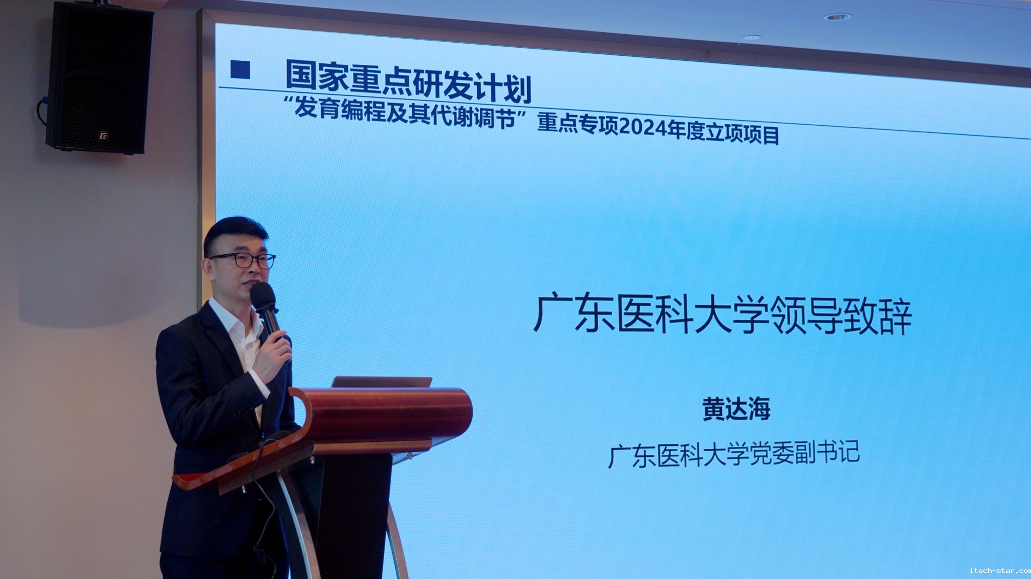 学校党委副书记黄达海代表承办单位致辞,对各位专家学者、科研同仁的到来表示热烈的欢迎和诚挚的感谢。他表示betway首页将充分发挥学校在基础医学研究和临床转化方面的特色优势,为项目开展提供全方位保障,并预祝本次项目启动会取得圆满成功。